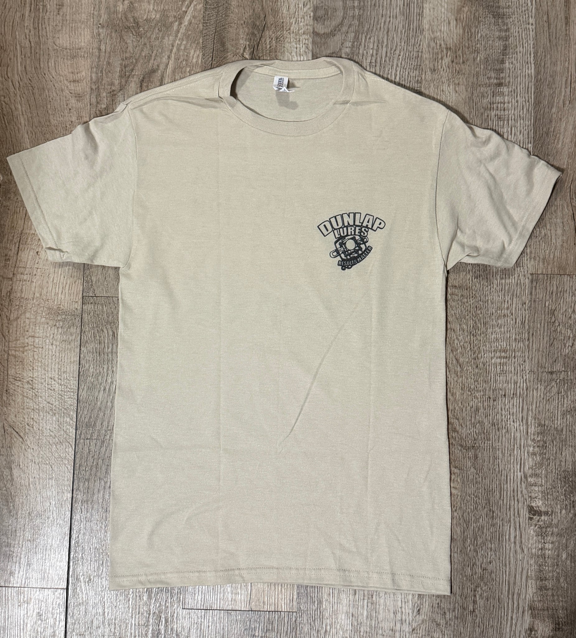Never Trapped a Mountain Lion but I've Choked a Cougar t-shirt on back. Dunlap Lures logo on the front.
